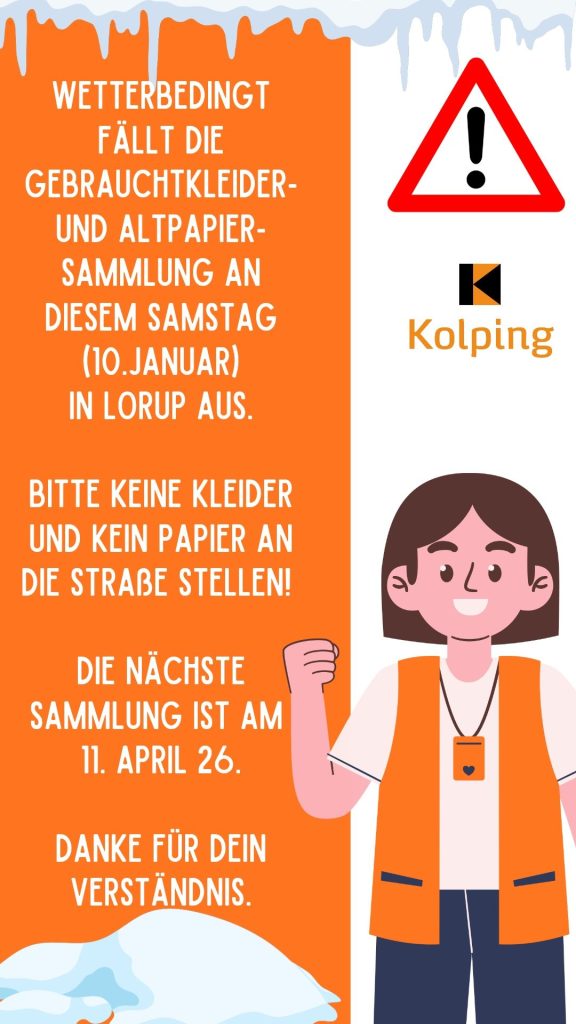 Altpapier- und Gebrauchtkleidersammlung am 10. Januar findet Wetterbedingt nicht statt