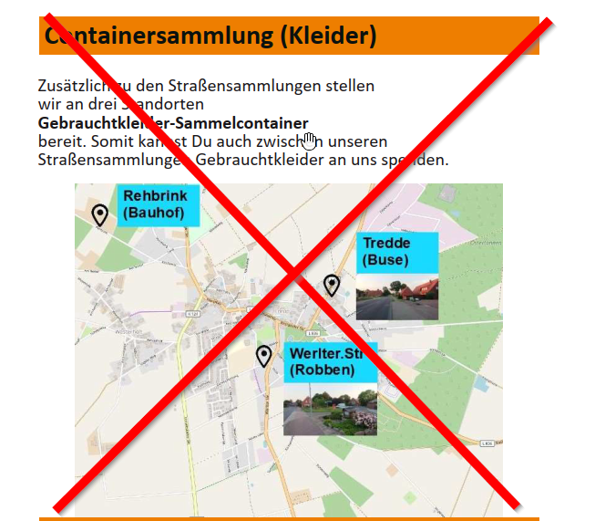 Schweren Herzens haben wir unsere Gebrauchtkleidersammlung per Container in Lorup eingestellt Aufgrund der geringen Kleiderpreise und der hohen Müllbelastung ist die Containersammlung nicht mehr wirtschaftlich.